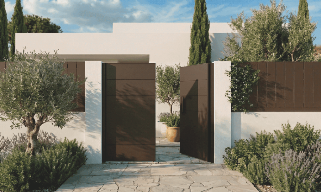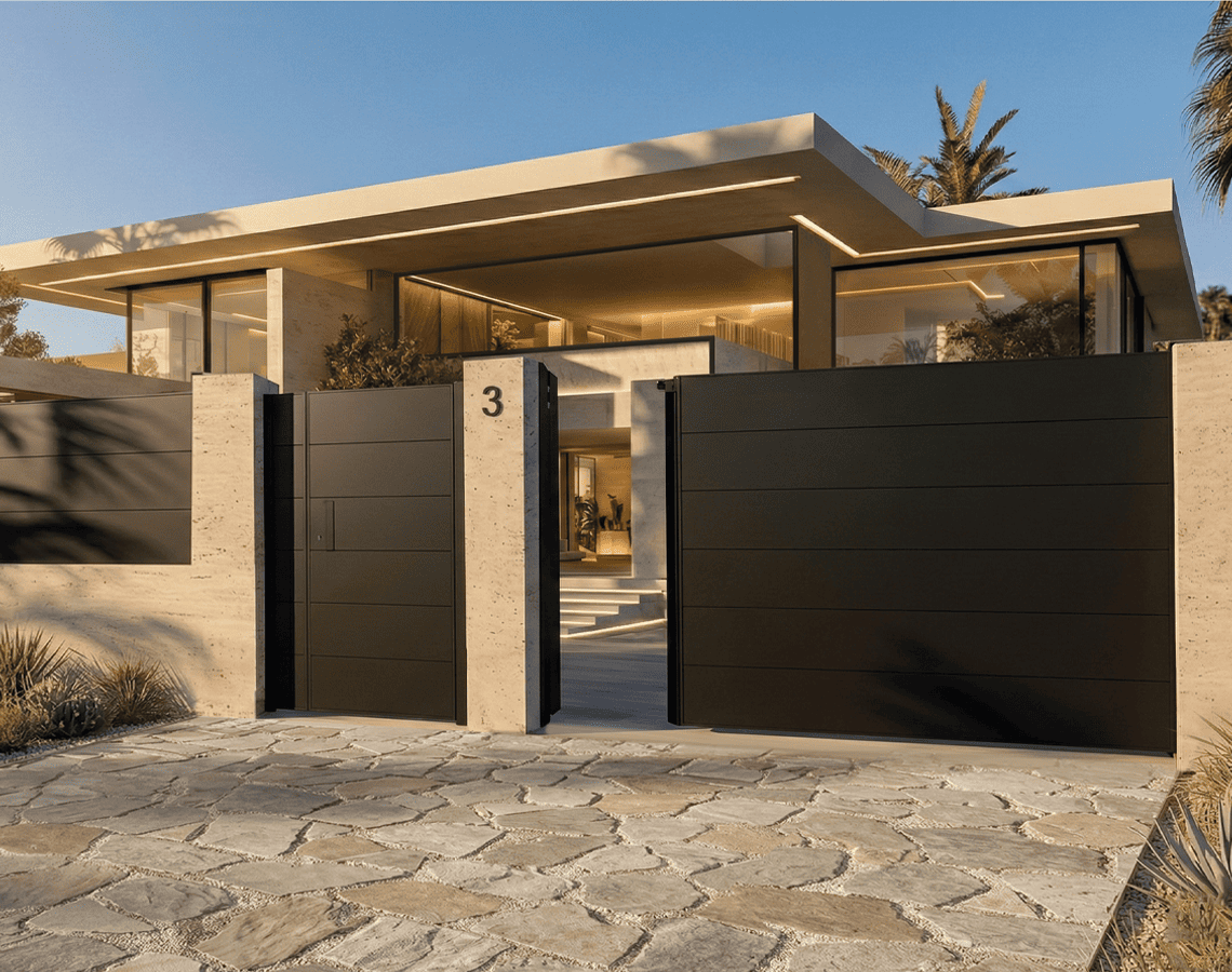 Esta serie de cancelas y vallados para exterior redefine el concepto de cerramiento contemporáneo gracias a un diseño extremadamente depurado y minimalista. Las lamas de 300 mm a doble cara aportan solidez visual y continuidad estética tanto en el interior como en el exterior. La unión entre lamas, cuidadosamente diseñada, emula el fresado de una puerta de madera, aportando un alto nivel de detalle y precisión constructiva sin renunciar a la durabilidad del material