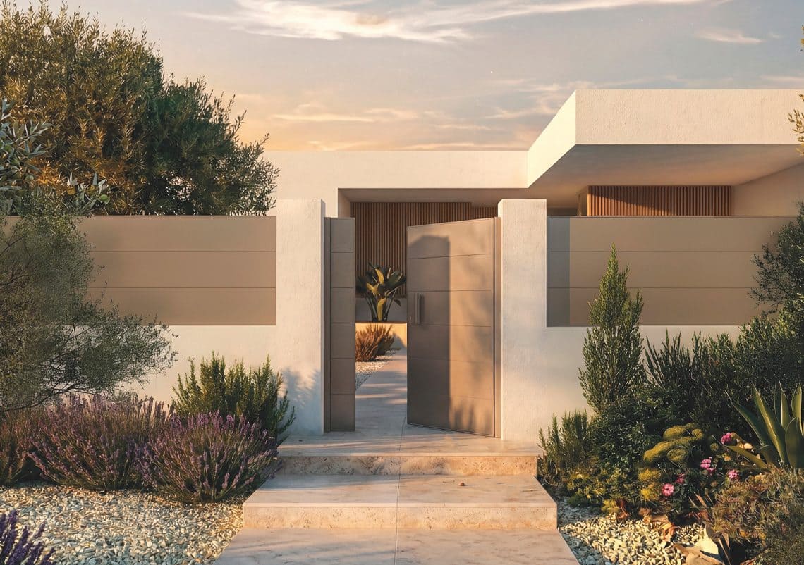 Líneas limpias, luz natural y materiales que respiran calma y equilibrio. Una puerta que conecta espacios con elegancia, evocando la serenidad y calidez del mediterráneo.